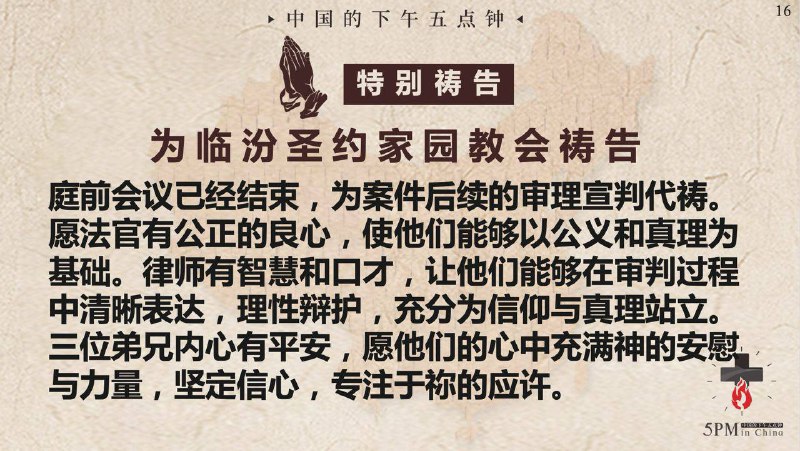 中国的下午五点钟国度祷告会,邀请您参与共同祷告。
