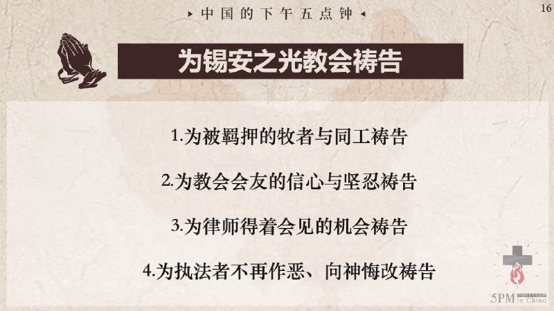 中国的下午五点钟国度祷告会,邀请您参与共同祷告。