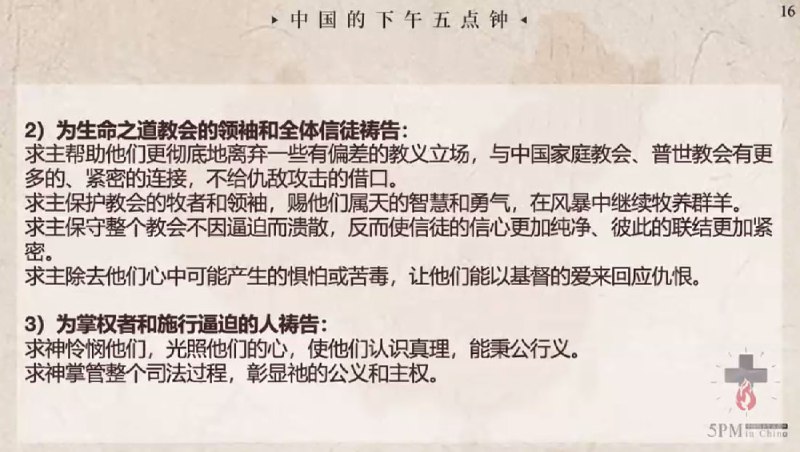 中国的下午五点钟,为狱中肢体代祷