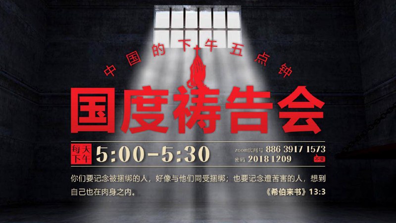 中国的下午五点钟,为狱中肢体代祷