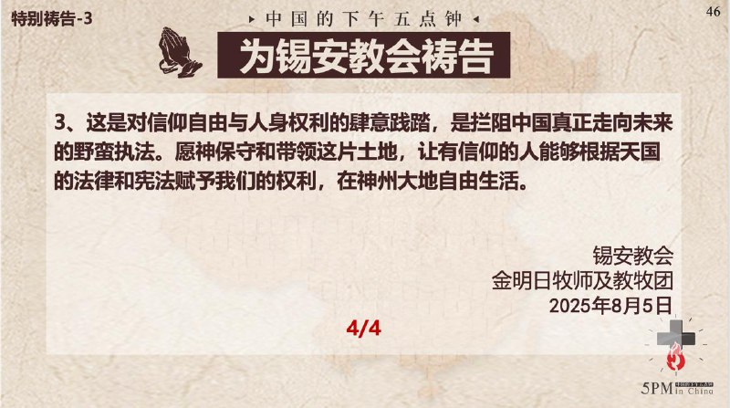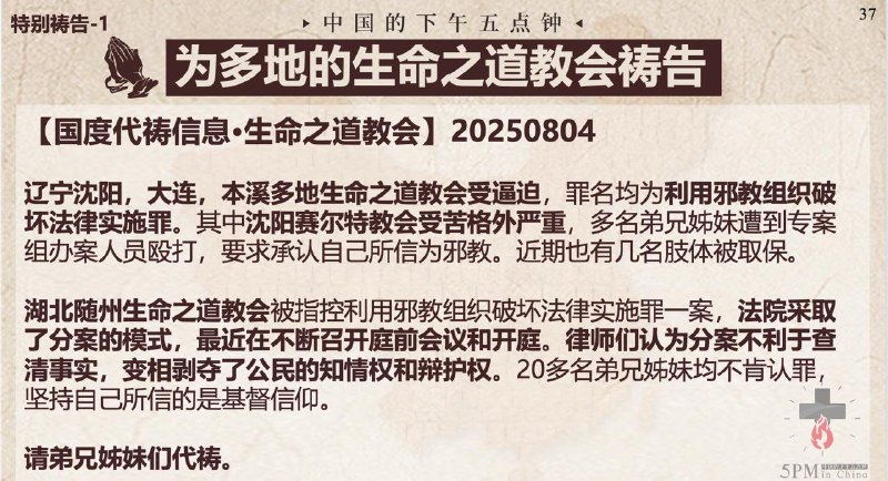 中国的下午五点钟,为狱中肢体代祷