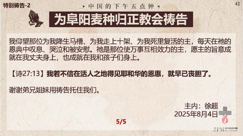 中国的下午五点钟国度祷告会,邀请您参与共同祷告。