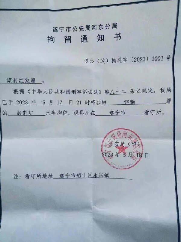 ③李冰容、颉(xié)莉红、黄秋燕。四川遂宁,5.17-18被刑事拘留,诈骗罪。