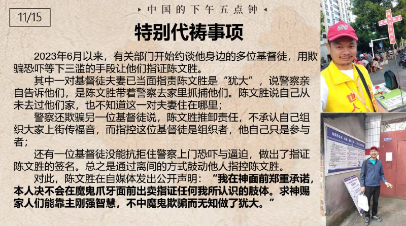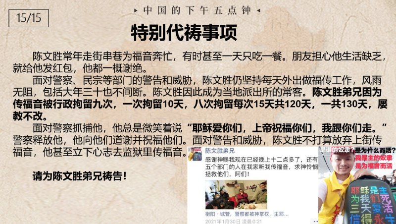中国的下午五点钟,为狱中肢体代祷
