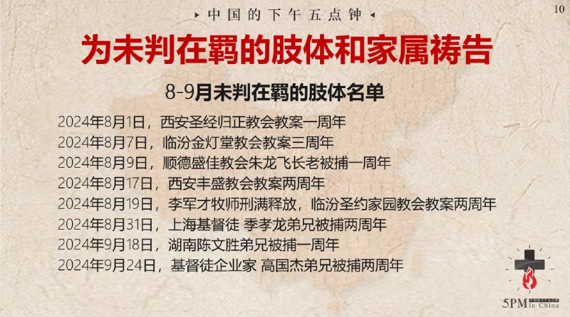 中国的下午五点钟,为狱中肢体代祷