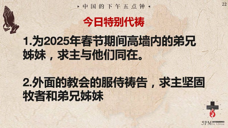 中国的下午五点钟国度祷告会,邀请您参与共同祷告。