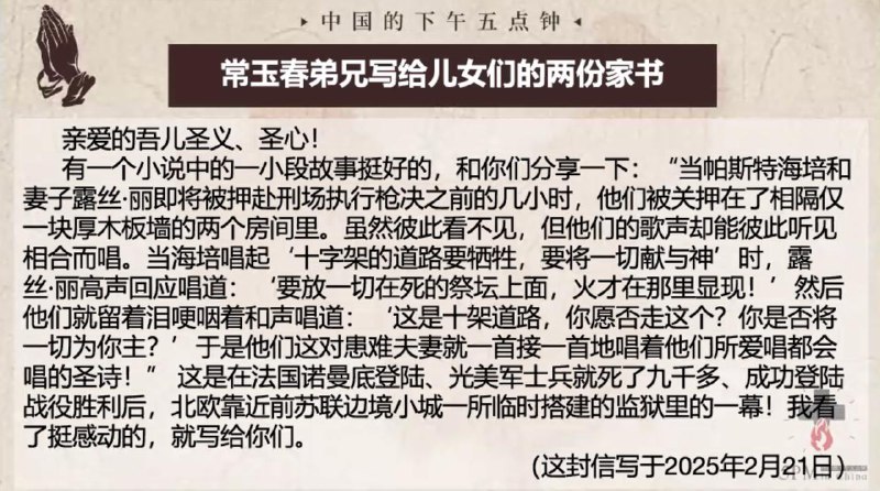 中国的下午五点钟,为狱中肢体代祷