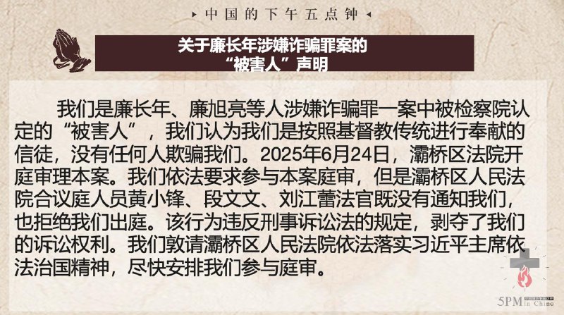 中国的下午五点钟,为狱中肢体代祷