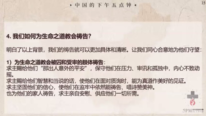 中国的下午五点钟,为狱中肢体代祷