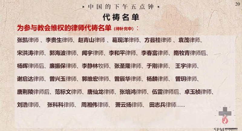 中国的下午五点钟,为狱中肢体代祷